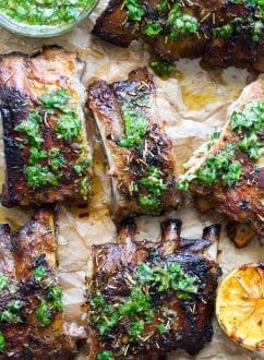 GFGluten FreeDFDairy FreeSCDSpecific Carbohydrate DietPPaleoVVeganW30Whole30Garlic & Herb Grilled Eggplant