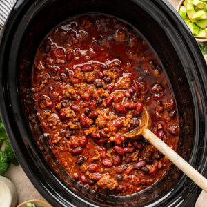This Easy Slow Cooker Chili is rich, hearty, and deeply flavorful, with a splash of beer that adds subtle bitterness and depth as it simmers. It’s the kind of cozy, crowd-friendly chili that tastes even better the longer it cooks or as leftovers over a baked potato.