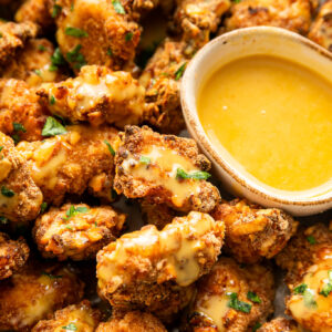 Pretzel Chicken Bites with Honey Mustard Dip are the ultimate crispy, salty bite, with juicy chicken wrapped in a delicious pretzel coating. It’s fun, snackable, bite-sized, and perfect for dipping, sharing, and disappearing fast.